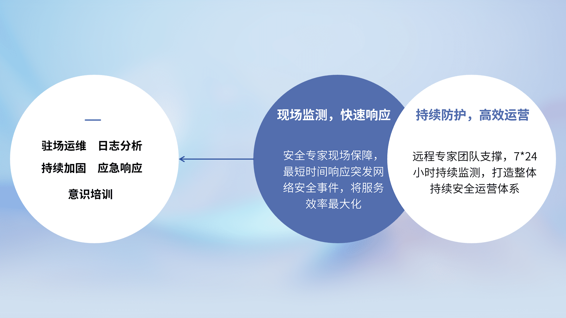 针对客户行业特性,,,,提供专属的一站式安全管理服务,,帮助客户全面感知网络空间威胁,,,通过安全专家的线上、、线下防护支持,,实现风险闭环,,,将安全保障常态化,,,为客户打造常态化安全运维运营服务。。。
